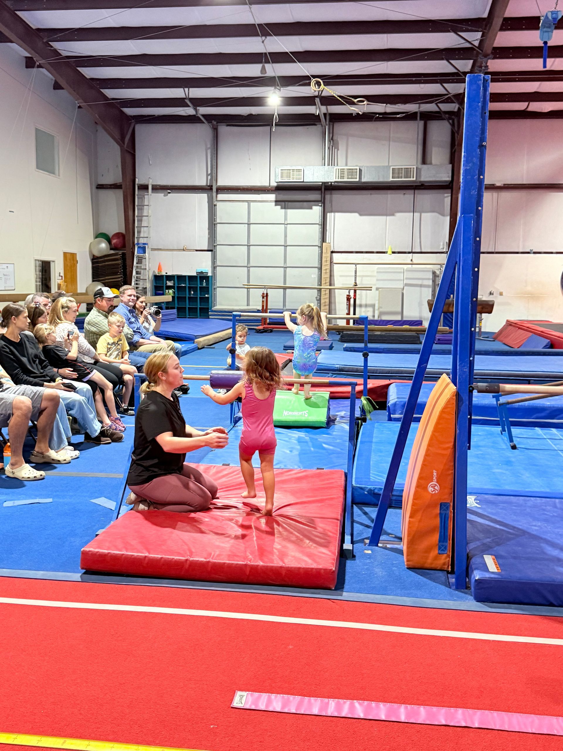 Each of our circuits focus on multiple levels of preschool development including coordination, balance, colors, numbers, following directions, and of course gymnastics progressions.